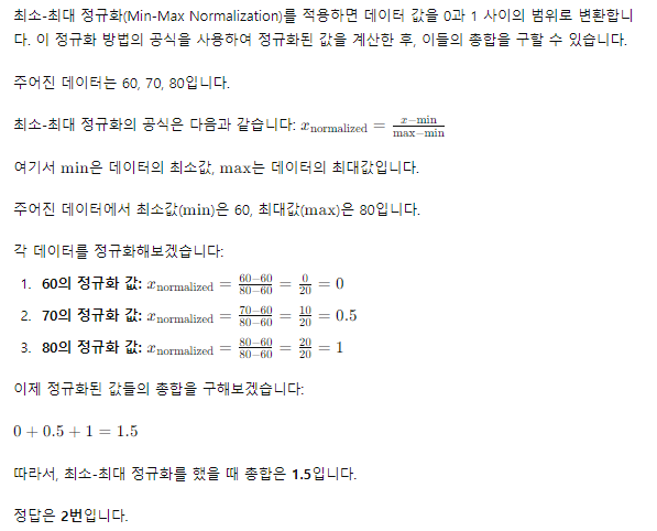 예상문제. 표준화 했을때 총합은 얼마인가 ? 60, 70, 80 설명: z 표준화를 수행하면 z 점수들의 총합은 항상 0 입니다.